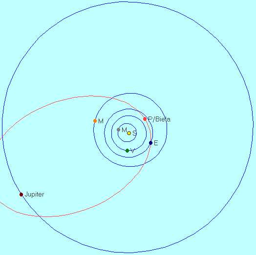 The 3rd discovery happened on 1826 February 27 when Wilhelm von Biela of Josephstadt, Austria, found a faint comet in the constellation of Pisces. Biela and other astronomers quickly noted that this comet was one and the same with Pons’ 1805 comet and Montaigne’s 1772 comet. With a period of ~6.6 years the comet was observed again in 1832. After being missed during the unfavorable return of 1839, the comet was recovered in 1845 which is when the story gets really interesting.