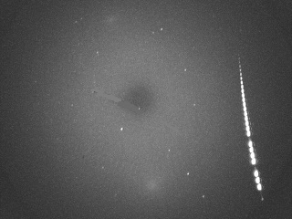 From Bob’s note for the night of Dec 14/15 : “After a week of clouds and rain the sky finally cleared. There was still a thin layer of high clouds which seemed to affect the sporadic count more than any of the showers. At 11:51:20 UT (3:51:20 am PST) a Sigma Hydrid fireball estimated at magnitude -7 was captured in the northeastern sky passing just east of the Big Dipper.”