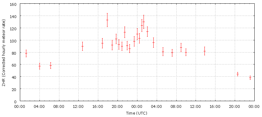 Graph of Geminid ZHR rates centered on the time of the peak. Credit: International Meteor Organization