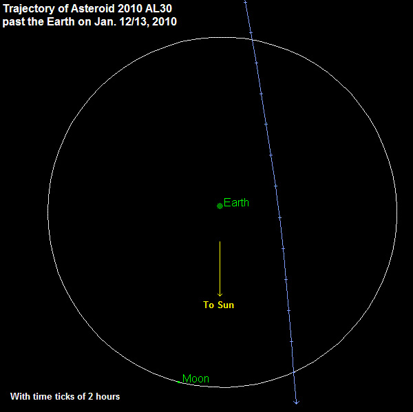 Path of 2010 AL30 on Jan 13. Credit: NASA/JPL.