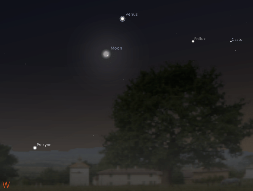 Tonight the Moon and Venus will make a spectacular pair low in the western sky just after sunset. It will definitely be a sight to see. Tomorrow night (June 15) the Moon will be well above Venus. If you miss out you will have another shot to see the Moon and Venus paired on July 14. Fast forward to August 12 and 13 and the Moon, Venus, Mars and Saturn will all be within a few degrees of each other.
