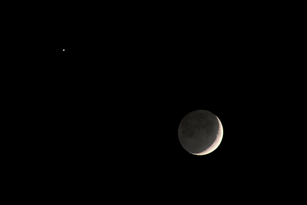 This evening the Moon is about 10% illuminated meaning that only ~1/1oth of the Moon’s disk is in sunlight as seen from Earth. Yet, if you look closely the entire disk is visible. Why is this? Have you ever noticed how bright the landscape is when the Moon is Full. Well, right now on the Moon, the Earth is nearly Full and is illuminating the night side of the Moon. The faint glow we see is called Earthshine.
